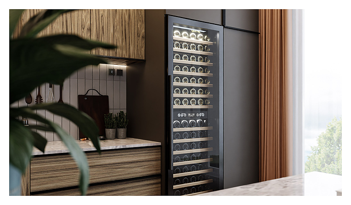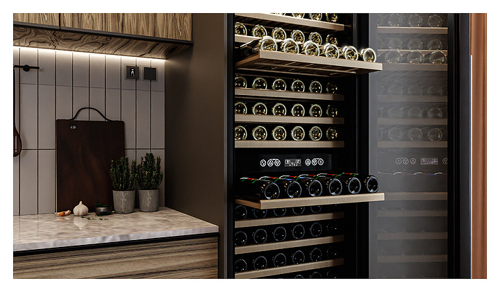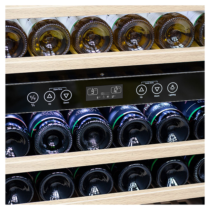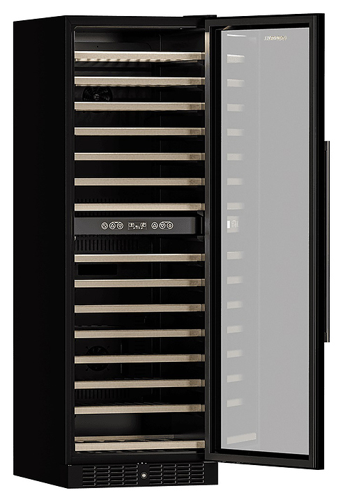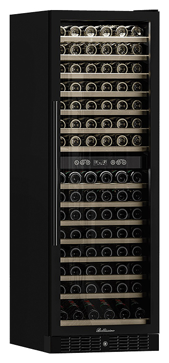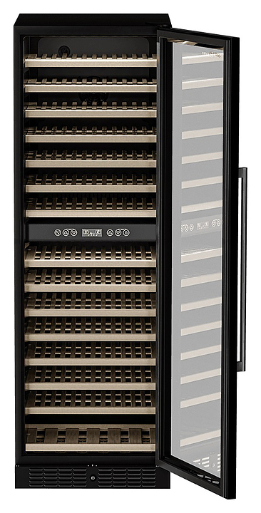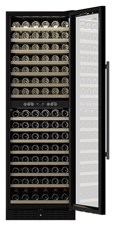 Винный шкаф MEYVEL MV160-KBT2 предназначен для демонстрации, хранения и создания оптимальных условий для сохранения всех вкусовых свойств вина в бутылках на предприятиях общественного питания, торговли, в барах, ресторанах, специализированных магазинах, частных домах или квартирах. Модель оснащена сенсорной панелью управления, 2 электронными термостатами и внутренней светодиодной подсветкой. Корпус и дверная ручка выполнены из окрашенной в черный цвет стали, дверь - из тройного стекла с УФ защитой с черной рамкой, полки - из массива бука. В комплект поставки входят петли для перенавешивания двери. Особенности: