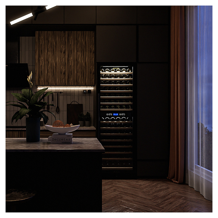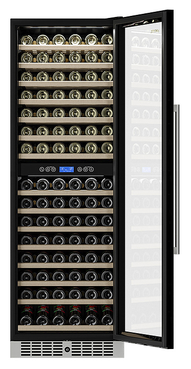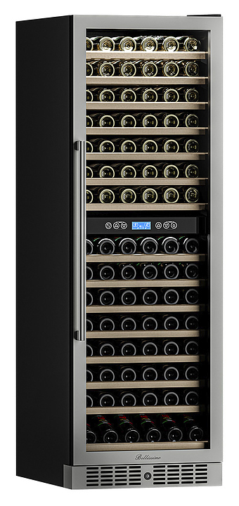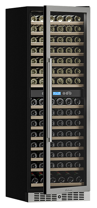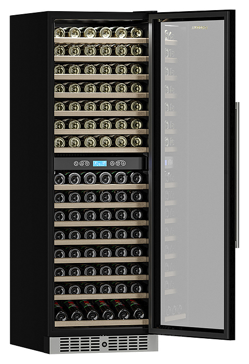 Винный шкаф MEYVEL MV160-KST2 предназначен для демонстрации, хранения и создания оптимальных условий для сохранения всех вкусовых свойств вина в бутылках на предприятиях общественного питания, торговли, в барах, ресторанах, специализированных магазинах, частных домах или квартирах. Модель оснащена сенсорной панелью управления, 2 электронными термостатами и внутренней светодиодной подсветкой. Корпус выполнен из окрашенной в черный цвет стали, дверь - из тройного стекла с УФ-фильтром, рамка двери - из бесшовной нержавеющей стали, полки - из массива бука. В комплект поставки входят петли для перенавешивания двери. Особенности: