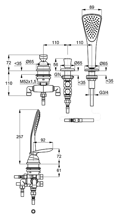 Смеситель на борт ванны KLUDI Balance 524480575 на 3 отверстия, хром