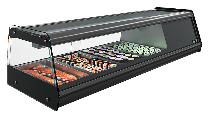 Настольная холодильная витрина Carboma AC38 SM 1,0-1 Sushi серии AZHA SUSHI используется на предприятиях общественного питания и торговли для демонстрации и непродолжительного хранения традиционных японских блюд: роллов, суши, сашими и др. Модель оснащена цифровым контроллером, LED подсветкой и энергосберегающими шторками. Каркас выполнен из стали, экспозиционная поверхность - из нержавеющей стали, термоизоляция – из пенополиуретана. Гастроемкости не входят в комплект поставки и приобретаются отдельно. Особенности: