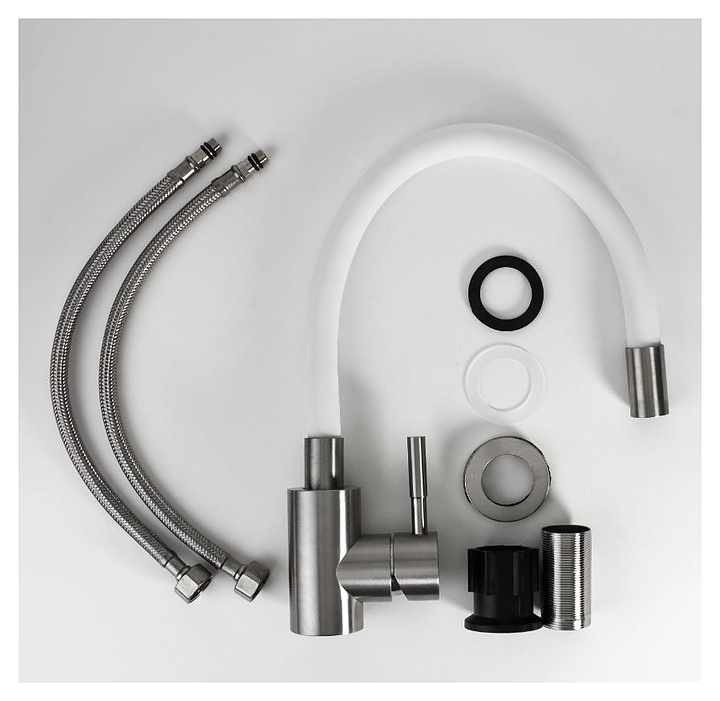 Смеситель ESKO SNAKE K44 W предназначен для подачи горячей и холодной воды в кухонных помещениях. Модель оснащена гибким изливом и керамическим картриджем, обеспечивающим плавный ход рычага смесителя, контроль и точность при выборе напора и температуры воды. Крепление FastFix позволяет надежно монтировать смеситель без использования инструментов. Изделие выполнено из нержавеющей стали, отличающейся прочностью, долговечностью и устойчивостью к коррозии. В комплект поставки входят пьедестал, ребро жесткости, крепление FastFix и гибкая подводка. Дополнительные характеристики: