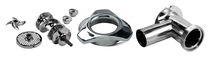 Мясорубка FIMAR 12/TS предназначена для измельчения мяса и рыбы на фарш, повторного измельчения котлетной массы и набивки колбас на предприятиях общественного питания и торговли. Модель оснащена режущей системой Enterprise, съемным режущим узлом, зубчатым редуктором в масляной ванне. Внутренние детали съемные, что удобно для их мытья в посудомоечной машине. Корпус выполнен из полированного алюминия, самозатачивающийся нож, решетка, бункер и извлекаемый режущий узел - из нержавеющей стали. В комплект поставки входят решетка и самозатачивающийся нож. Дополнительные характеристики:
