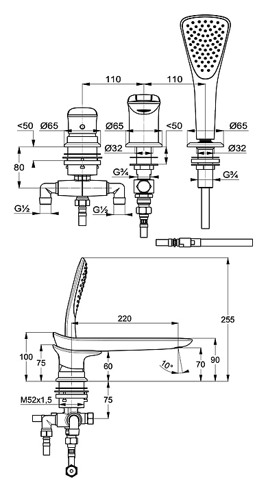 Смеситель на борт ванны KLUDI Ambienta 534470575 на 3 отверстия, хром