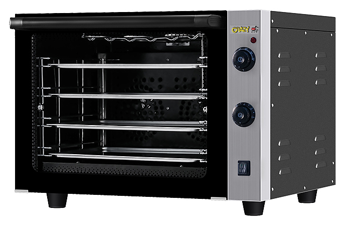 Конвекционная печь Crazy Pan CP-EC01DF предназначена для выпекания или разогрева кондитерских и хлебобулочных изделий, различных блюд, замороженных или предварительно выдержанных в расстоечном шкафу заготовок из теста на предприятиях общественного питания и торговли. Модель оснащена 1 ТЭНом и внутренней подсветкой. В комплект поставки входят 4 противня и сетевая вилка. Дополнительные характеристики: