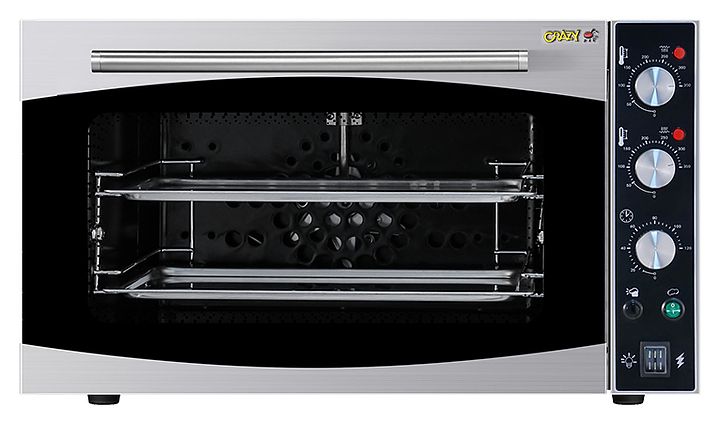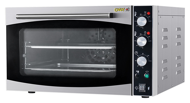 Конвекционная печь Crazy Pan CP-EC06THS предназначена для выпекания или разогрева кондитерских и хлебобулочных изделий, различных блюд, замороженных или предварительно выдержанных в расстоечном шкафу заготовок из теста на предприятиях общественного питания и торговли. Модель оснащена 2 ТЭНами и внутренней подсветкой. В комплект поставки входят 2 противня и сетевая вилка. Дополнительные характеристики: