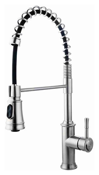 Смеситель FASHUN A56008 предназначен для подачи горячей и холодной воды в кухонных помещениях. Модель оснащена вытяжным изливом и керамическим картриджем, обеспечивающим плавный ход рычага смесителя, контроль и точность при выборе напора и температуры воды. В комплект поставки входят подводка и гайка для крепления. Особенности: