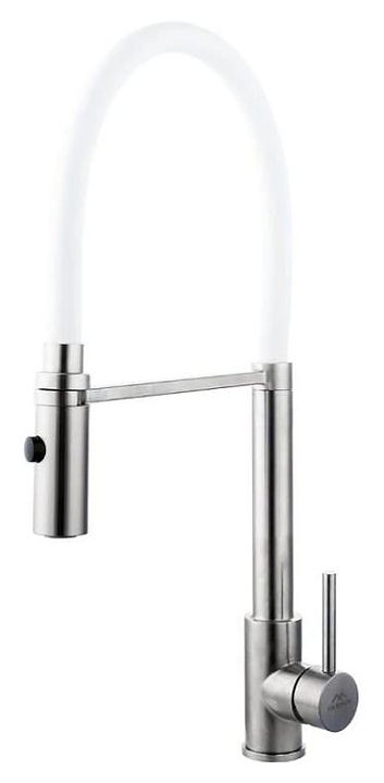Смеситель FASHUN A54111-8 предназначен для подачи горячей и холодной воды в кухонных помещениях. Модель оснащена гибким изливом и керамическим картриджем, обеспечивающим плавный ход рычага смесителя, контроль и точность при выборе напора и температуры воды. В комплект поставки входят подводка и гайка для крепления. Особенности: