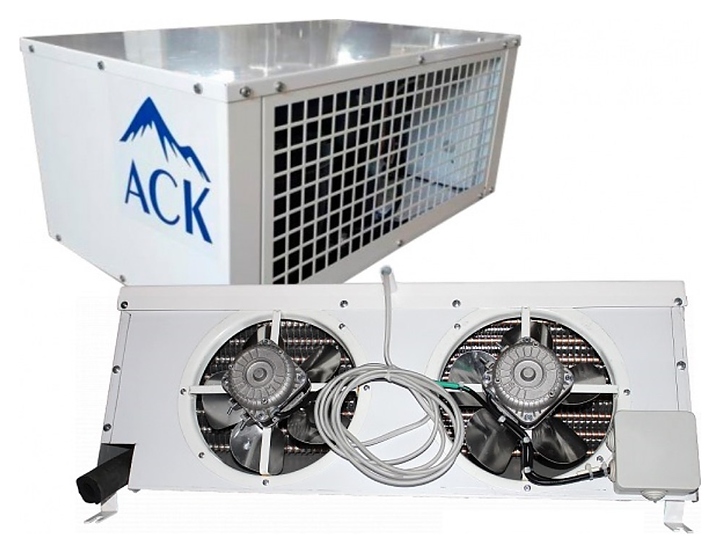 Напольно-потолочная сплит-система АСК-Холод ССп-32 предназначена для поддержания необходимого температурного режима в холодильных камерах на предприятиях пищевой промышленности, общественного питания и торговли. Модель оснащена компрессорно-конденсаторным блоком, который размещается снаружи холодильной камеры и воздухоохладителем внутри камеры, соединенными между собой теплоизолированными медными трубками, по которым циркулирует хладагент и выводится конденсат, а также кабелем питания и управления. Корпус изготовлен из оцинкованной стали белого цвета толщиной от 0,9 до 1,2 мм с полимерным покрытием в защитной пленке, трубы конденсатора и испарителя - из меди, ребра - из алюминиевого сплава. Комплектация: