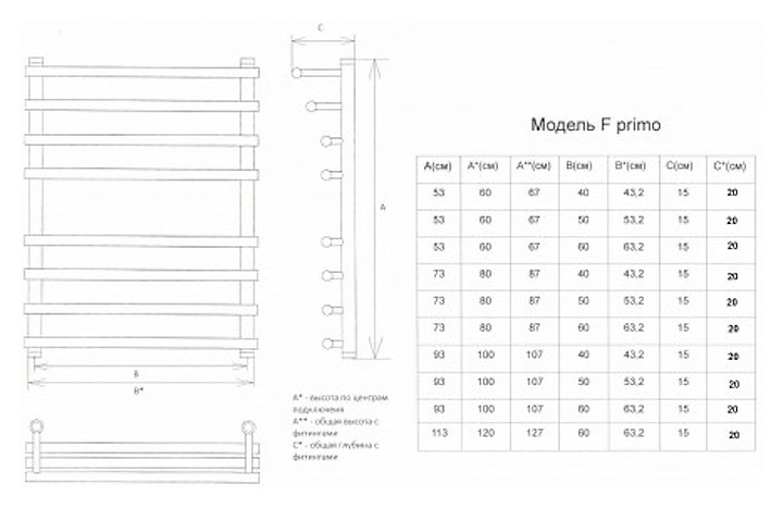 Полотенцесушитель Двин 4627166895842 F Primo 100/50 1"-3/4"-1/2" К3 предназначен для подогрева и сушки полотенец, а также для обогрева ванных комнат в квартирах, коттеджах и частных домах. Модель оснащена 10 перекладинами. Преимущество водяного полотенцесушителя состоит в том, что в зимнее время года выполняет роль обогревателя и поддерживает температуру в ванной комнате, тем самым не допуская образования плесени и грибка. Изделие выполнено из нержавеющей стали, которая отличается прочностью, долговечностью и устойчивостью к перепадам температур. Комплект поставки: