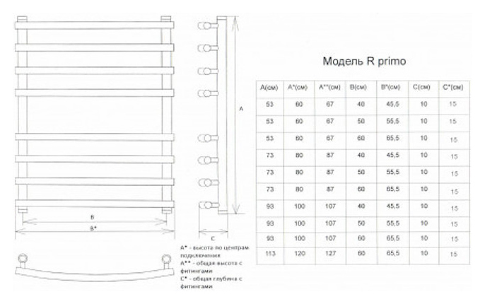 Полотенцесушитель Двин 4627085947905 R Primo 60/50 1"-3/4"-1/2" К3 предназначен для подогрева и сушки полотенец, а также для обогрева ванных комнат в квартирах, коттеджах и частных домах. Модель оснащена 6 перекладинами. Преимущество водяного полотенцесушителя состоит в том, что в зимнее время года выполняет роль обогревателя и поддерживает температуру в ванной комнате, тем самым не допуская образования плесени и грибка. Изделие выполнено из нержавеющей стали, которая отличается прочностью, долговечностью и устойчивостью к перепадам температур. Комплект поставки: