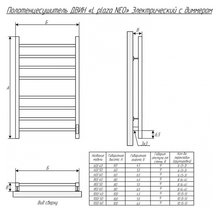Полотенцесушитель электрический Двин 4656759179182 L plaza neo 100/50 K с диммером и таймером, полированный