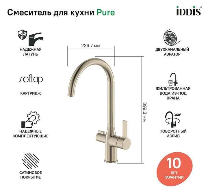 Смеситель для кухни с фильтром IDDIS Pure PURBNFJi05