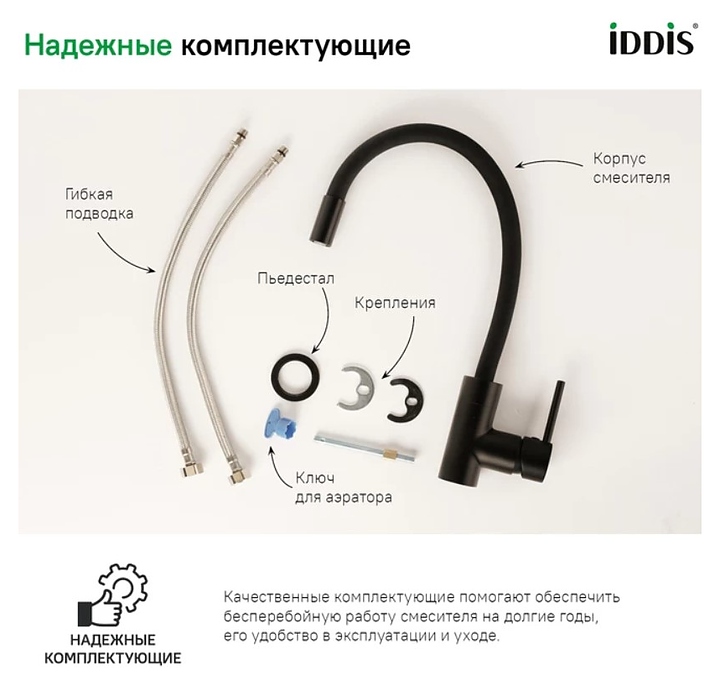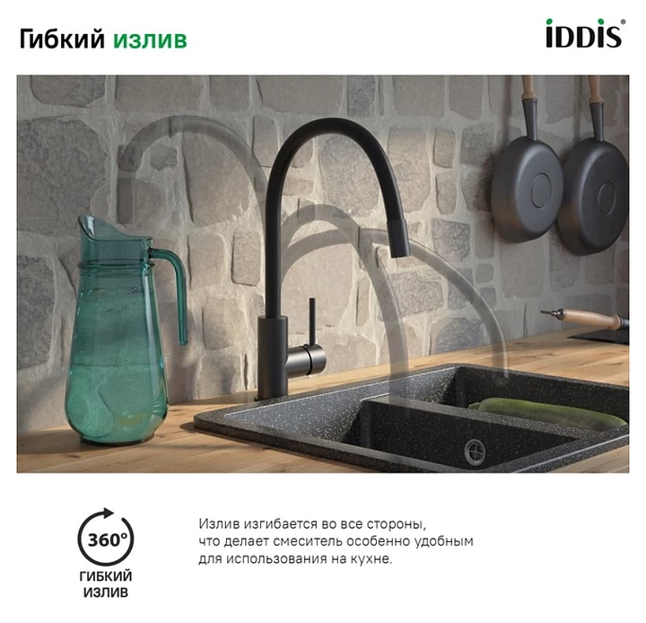 Смеситель для кухни IDDIS Kitchen 360 K36BLJ0i05 гибкий излив