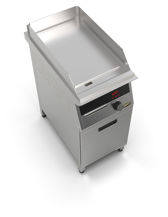 Индукционный гриль SMART INDUCTION G72-PN предназначен для приготовления мясных, рыбных и овощных блюд на предприятиях общественного питания и торговли. Модель оснащена электронно-механической панелью управления с цифровой индикацией и сенсорными кнопками, съемным жировым фильтром для отделения жира и влаги от поступающего внутрь аппарата воздуха, ящиком для сбора жира и регулируемыми по высоте ножками. Корпус и столешница выполнены из нержавеющей стали AISI430, рабочая поверхность и передняя панель - из нержавеющей стали. Особенности: