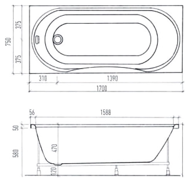 Ванна Aquanika Form A1017075026 170х75 см, акрил