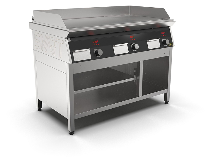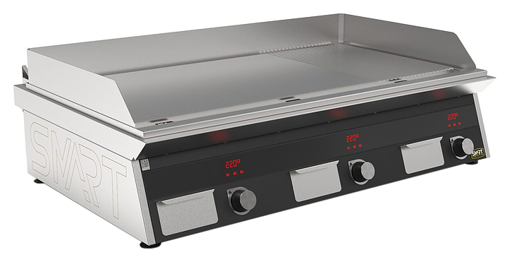 Индукционный гриль SMART INDUCTION G76-PPRB предназначен для приготовления мясных, рыбных и овощных блюд на предприятиях общественного питания и торговли. Модель оснащена электронно-механической панелью управления с цифровой индикацией и сенсорными кнопками, съемным жировым фильтром для отделения жира и влаги от поступающего внутрь аппарата воздуха, ящиком для сбора жира и регулируемыми по высоте ножками. Корпус и столешница выполнены из нержавеющей стали AISI430, рабочая поверхность - из нержавеющей стали, передняя панель имеет стойкое полимерное покрытие черного цвета. Особенности: