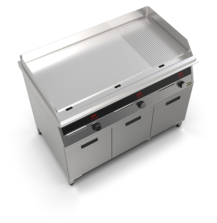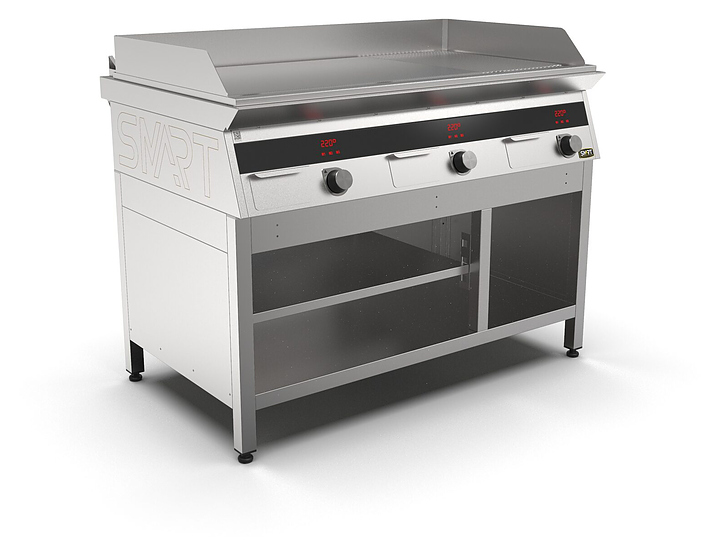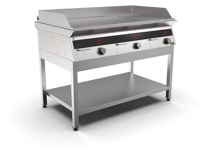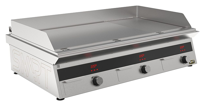 Индукционный гриль SMART INDUCTION G76-PPRN предназначен для приготовления мясных, рыбных и овощных блюд на предприятиях общественного питания и торговли. Модель оснащена электронно-механической панелью управления с цифровой индикацией и сенсорными кнопками, съемным жировым фильтром для отделения жира и влаги от поступающего внутрь аппарата воздуха, ящиком для сбора жира и регулируемыми по высоте ножками. Корпус и столешница выполнены из нержавеющей стали AISI430, рабочая поверхность и передняя панель - из нержавеющей стали. Особенности: