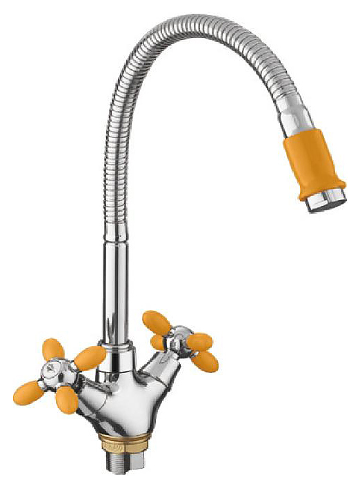 Смеситель FASHUN A43127-9 предназначен для подачи горячей и холодной воды в кухонных помещениях. Модель оснащена вентилями, гибким изливом в металлической оплетке и керамической кран-буксой, обеспечивающей бесшумное смешивание воды. Изделие выполнено из цинкового сплава, который отличается прочностью и долговечностью. В комплект поставки входят подводка и гайка для крепления. Дополнительные характеристики: