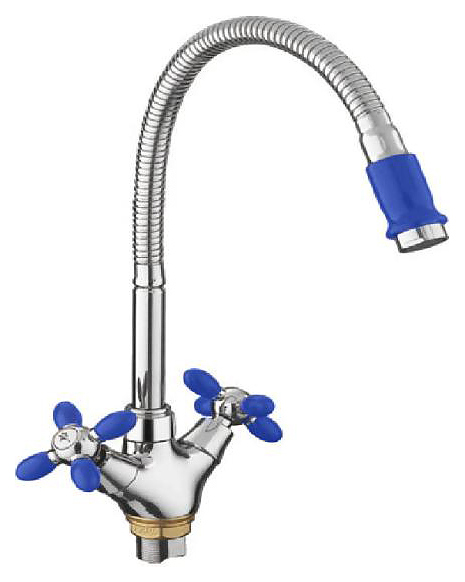 Смеситель FASHUN A43127-11 предназначен для подачи горячей и холодной воды в кухонных помещениях. Модель оснащена вентилями, гибким изливом в металлической оплетке и керамической кран-буксой, обеспечивающей бесшумное смешивание воды. Изделие выполнено из цинкового сплава, который отличается прочностью и долговечностью. В комплект поставки входят подводка и гайка для крепления. Дополнительные характеристики: