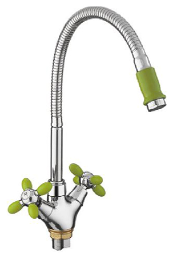 Смеситель FASHUN A43127-6 предназначен для подачи горячей и холодной воды в кухонных помещениях. Модель оснащена вентилями, гибким изливом в металлической оплетке и керамической кран-буксой, обеспечивающей бесшумное смешивание воды. Изделие выполнено из цинкового сплава, который отличается прочностью и долговечностью. В комплект поставки входят подводка и гайка для крепления. Дополнительные характеристики: