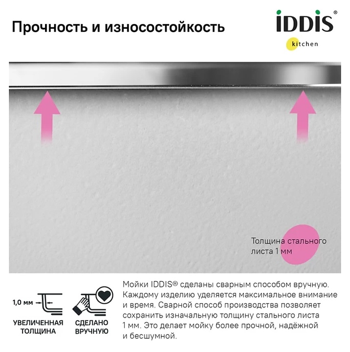 Мойка кухонная IDDIS Edifice EDI44G0i77 44х44 см