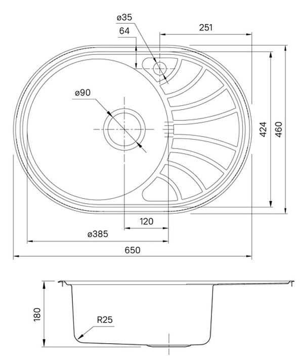 Мойка кухонная IDDIS Suno SUN65SLi77 65х46 см, правое крыло