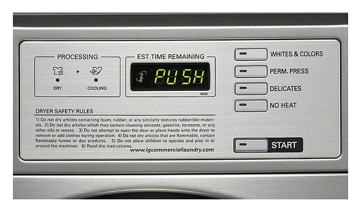 Сушильная машина LG RV1329C4T используется в прачечных, химчистках и отелях, а также в частных домах и квартирах для сушки белья, отжатого до 50 % влажности. Модель оснащена LED- дисплеем, прозрачной стеклянной дверцей и 4 регулируемыми ножками. Корпус выполен из стали с порошковым покрытием премиум-класса, дисплей - из пластика с напылением, панель управления - из стали. В комплект поставки входит планка для вертикального соединения. Программы сушки: