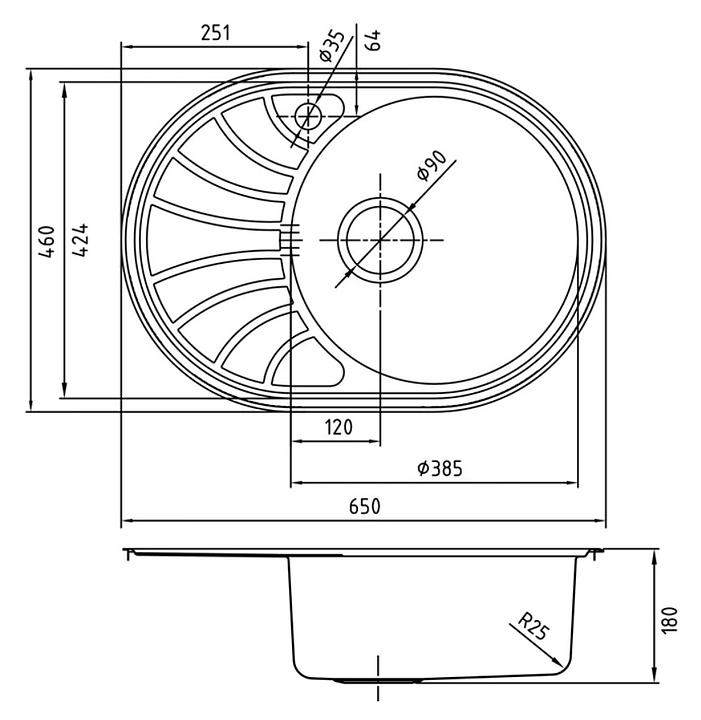 Мойка кухонная IDDIS Suno SUN65SRi77 65х46 см, левое крыло