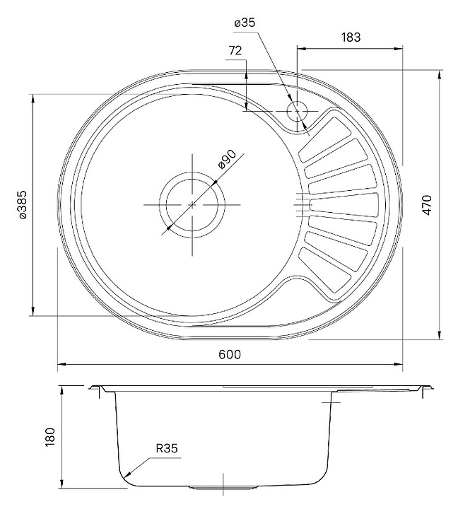 Мойка кухонная IDDIS Suno SUN60SRi77 60х47 см, левое крыло