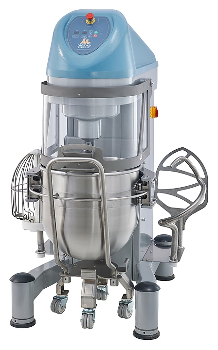 Планетарный миксер Matas PMX 04 предназначен для замеса различного вида теста жидкой консистенции, в том числе белкового, заварного, дрожжевого, бисквитного, а также для приготовления пюре, майонеза, различных соусов, взбитых сливок на предприятиях пищевой промышленности, общественного питания и торговли. Модель оснащена съемной дежей и месильным органом планетарного типа. Дежа и все соприкасающиеся с продуктом элементы выполнены из нержавеющей стали. В комплект поставки не входит тележка для дежи. Особенности: