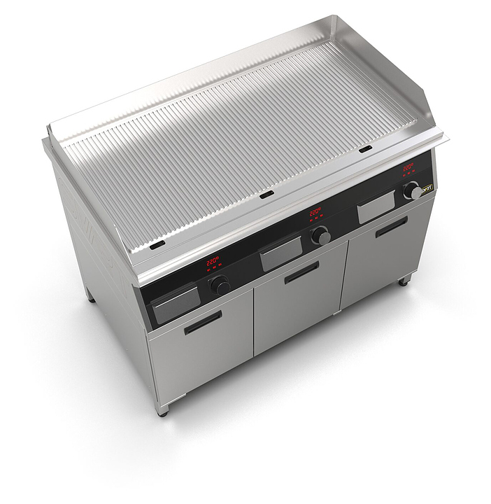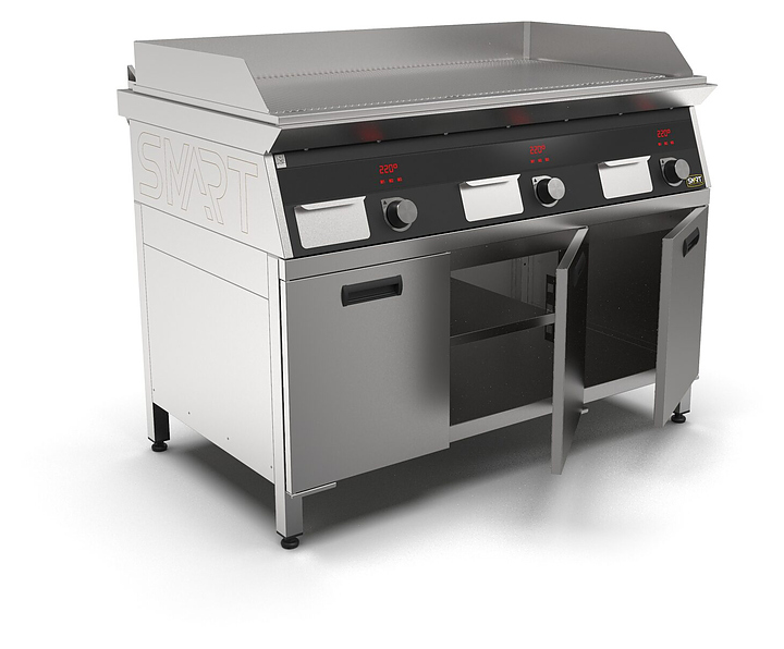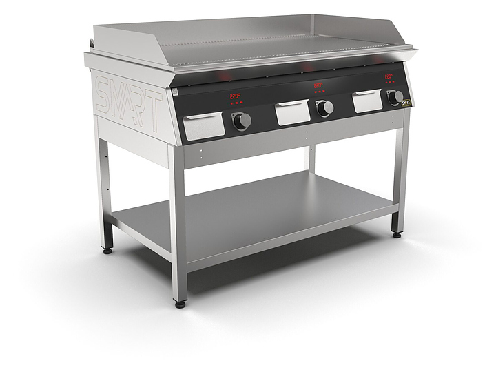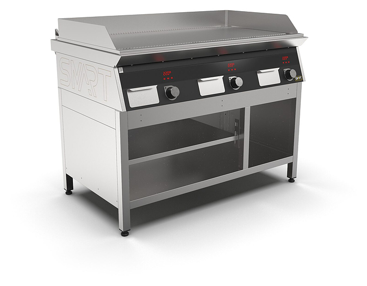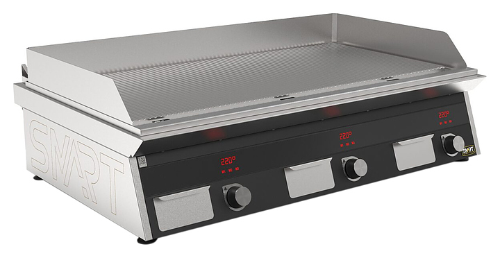 Индукционный гриль SMART INDUCTION G96-RB предназначен для приготовления мясных, рыбных и овощных блюд на предприятиях общественного питания и торговли. Модель оснащена электронно-механической панелью управления с цифровой индикацией и сенсорными кнопками, съемным жировым фильтром для отделения жира и влаги от поступающего внутрь аппарата воздуха, ящиком для сбора жира и регулируемыми по высоте ножками. Корпус и столешница выполнены из нержавеющей стали AISI430, рабочая поверхность - из нержавеющей стали, передняя панель имеет стойкое полимерное покрытие черного цвета. Особенности: