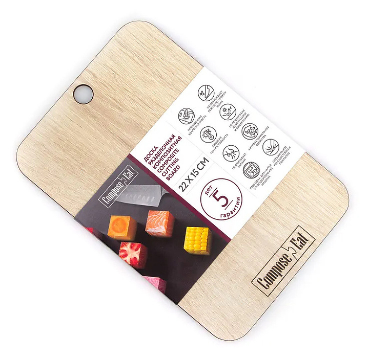 Разделочная доска ComposeEat DR2201502094OA4 выполнена из бумажного композитного материала, сохраняющего целостность при падении, ударах и механической нагрузке, устойчивого к резким перепадам температур, не подверженному деформации, выцветанию, сколам, трещинам и механическим повреждениям. Модель оснащена отверстием для подвешивания. Особенности: