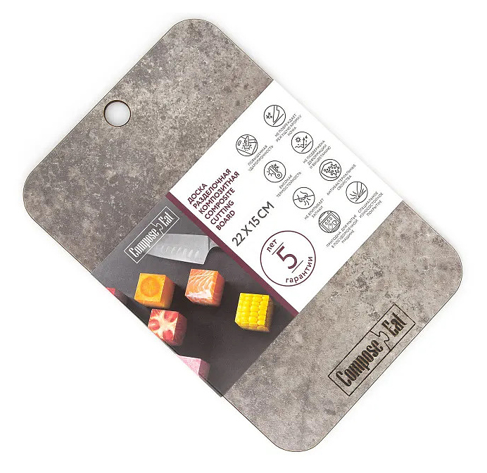 Разделочная доска ComposeEat DR2201503031OA4 выполнена из бумажного композитного материала, сохраняющего целостность при падении, ударах и механической нагрузке, устойчивого к резким перепадам температур, не подверженному деформации, выцветанию, сколам, трещинам и механическим повреждениям. Модель оснащена отверстием для подвешивания. Особенности:
