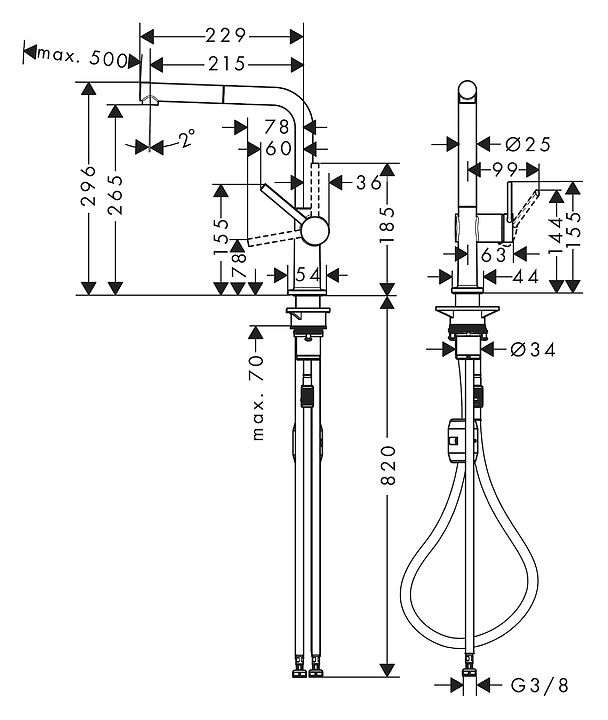 Смеситель Hansgrohe Talis M54 72808670 предназначен для подачи горячей и холодной воды в кухонных помещениях. Модель оснащена вытяжным изливом и керамическим картриджем, обеспечивающим плавный ход рычага смесителя, контроль и точность при выборе напора и температуры воды. Система QuickClean позволяет удалить известковый налет быстро и просто. В комплект поставки входят соединительные шланги и крепежный набор. Особенности: