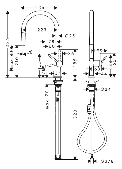 Смеситель Hansgrohe Talis M54 210 72802000 предназначен для подачи горячей и холодной воды в кухонных помещениях. Модель оснащена вытяжным изливом и керамическим картриджем, обеспечивающим плавный ход рычага смесителя, контроль и точность при выборе напора и температуры воды. Технология Air Power смешивает воду с воздухом, что делает капли объемнее, легче и мягче. Система QuickClean позволяет удалить известковый налет быстро и просто. В комплект поставки входят соединительные шланги и крепежный набор. Особенности: