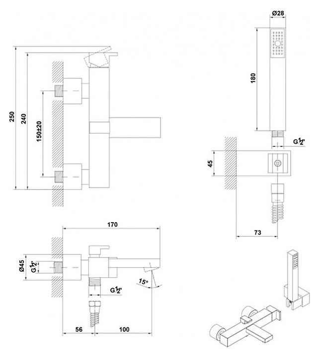Смеситель для ванны с душем Gala Kirei 38776 хром