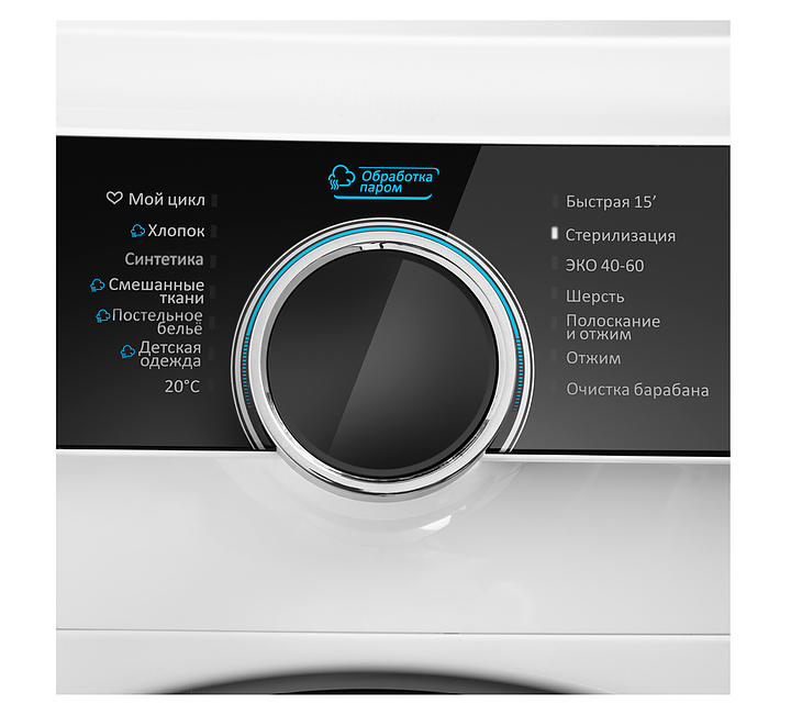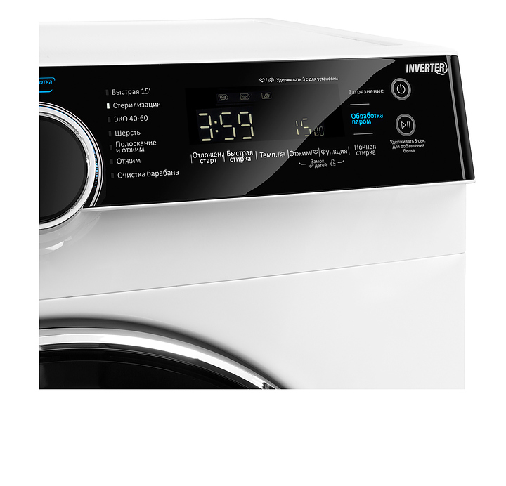 Индикация заданных параметров, этапов процесса, активных функций и блокировки люка