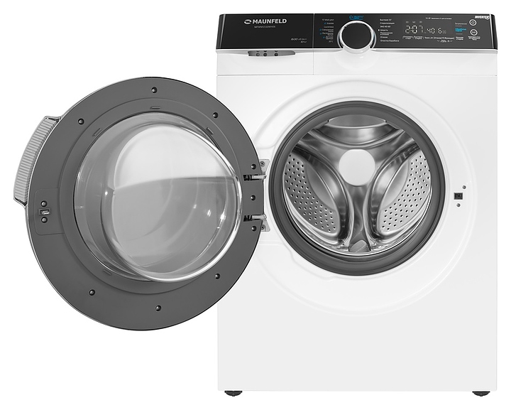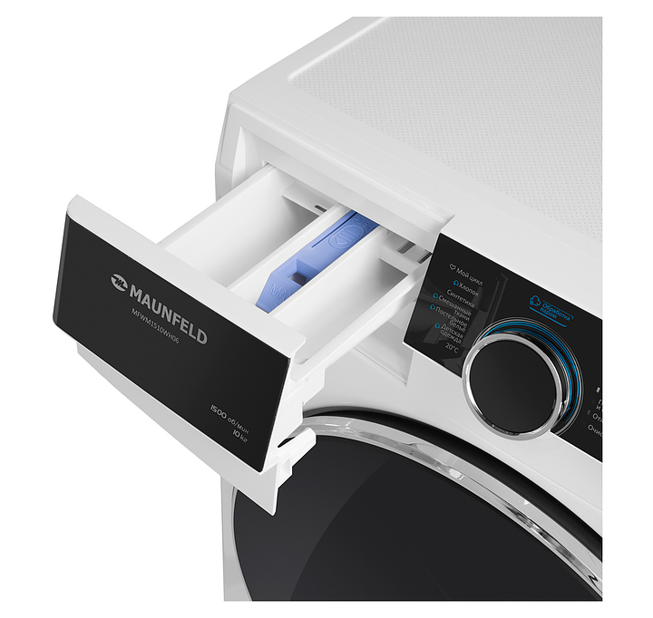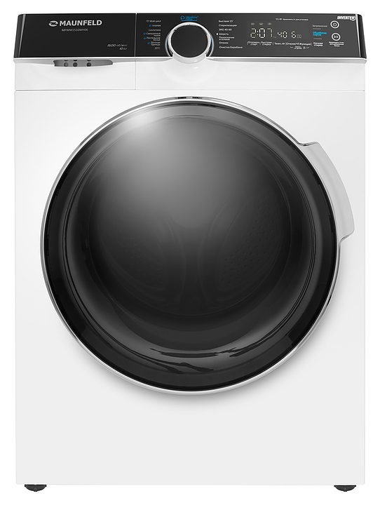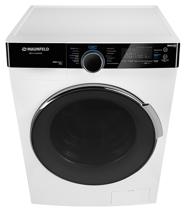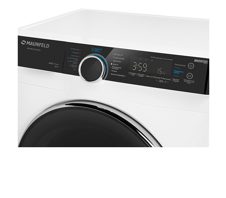 Стиральная машина Maunfeld MFWM1510WH06используется в домашних условиях, а также небольших прачечных для стирки, полоскания и отжима белья, одежды и тканей. Модель оснащена фронтальным люком со смотровым окном, съемным контейнером для моющих средств с 3 отсеками, сливным шлангом, кабелем питания с вилкой, электромеханической панелью управления с поворотным переключателем программ, сенсорными клавишами, сигнальными лампами и цифровым дисплеем с белой светодиодной подсветкой индикации. Корпус выполнен из металла с антикоррозийным покрытием белого цвета, внешняя крышка двери люка – из стекла с полупрозрачной дымчатой тонировкой и окантовкой белого цвета, барабан – из высококачественной нержавеющей стали.