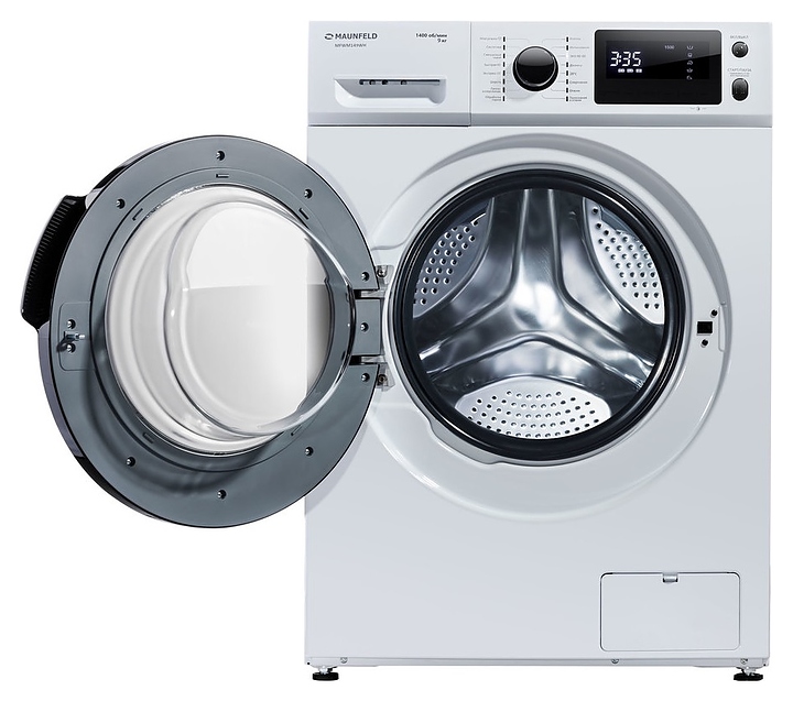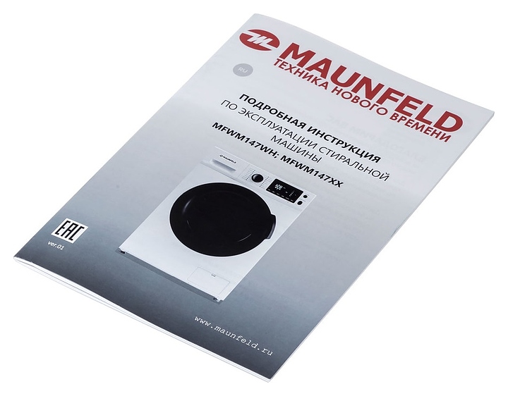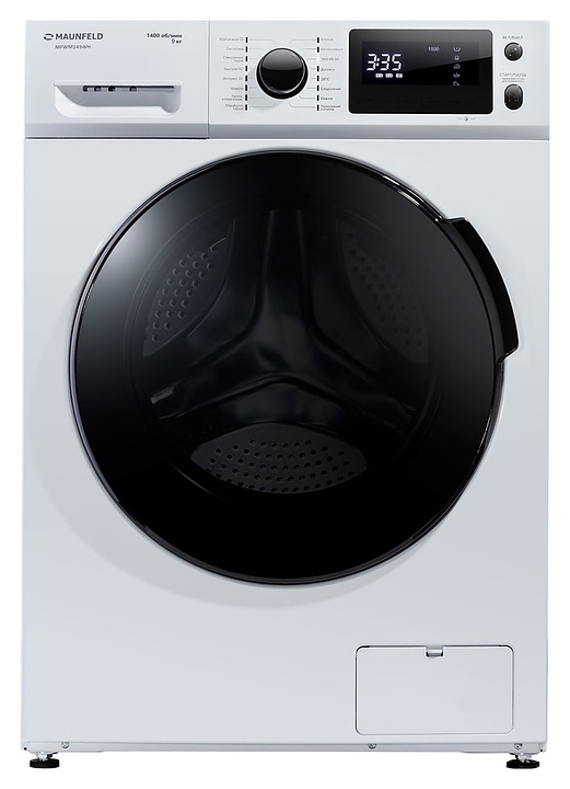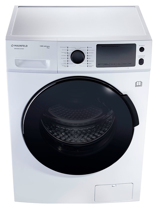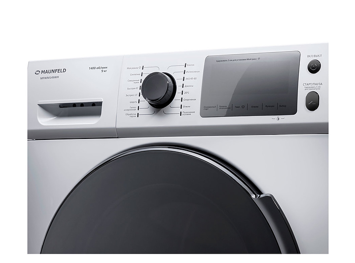 Стиральная машина Maunfeld MFWM149WHиспользуется в домашних условиях, а также небольших прачечных и гостиничных комплексах для стирки, полоскания и отжима белья, одежды и тканей. Модель оснащена фронтальным люком со смотровым окном, съемным контейнером для моющих средств с 3 отсеками, сливным шлангом, кабелем питания с вилкой, электромеханической панелью управления с поворотным переключателем программ, функциональными кнопками, сенсорными клавишами, сигнальными лампами программ и цифровым дисплеем с белой светодиодной подсветкой индикации. Корпус выполнен из металла с антикоррозийным покрытием белого цвета, внешняя крышка двери люка – из стекла с полупрозрачной дымчатой тонировкой и окантовкой черного цвета, барабан – из высококачественной нержавеющей стали.
