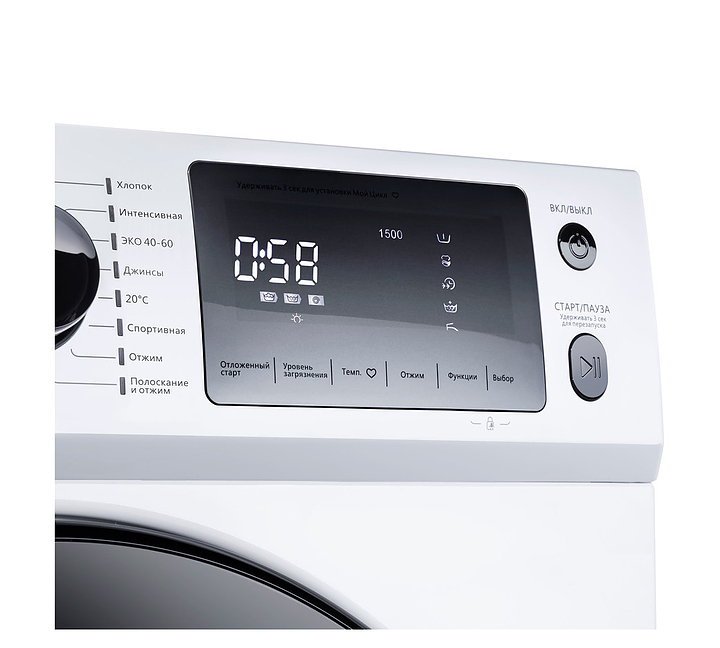 Индикация заданных параметров, этапов процесса, активных функций и блокировки люка