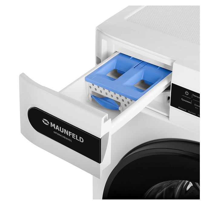 Стиральная машина Maunfeld MFWM148WH01 используется в домашних условиях, а также небольших прачечных для стирки, полоскания и отжима белья, одежды и тканей. Модель оснащена фронтальным люком со смотровым окном, съемным контейнером для моющих средств с 3 отсеками, сливным шлангом, кабелем питания с вилкой, сенсорной панелью управления с сигнальными лампами и цифровым дисплеем с белой светодиодной подсветкой индикации. Корпус выполнен из металла с антикоррозийным покрытием белого цвета, окантовка двери люка черного цвета, барабан – из высококачественной нержавеющей стали. В комплект поставки входят шланг для подачи воды, гаечный ключ, набор заглушек и инструкция по эксплуатации. Особенности: