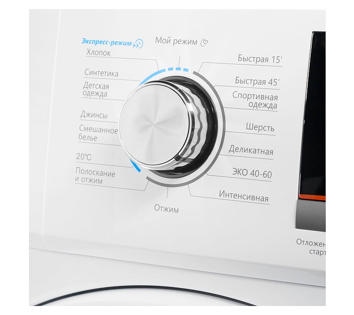 Смешанные ткани: 40 °С / 1 ч 20 мин. / 4,5 кг