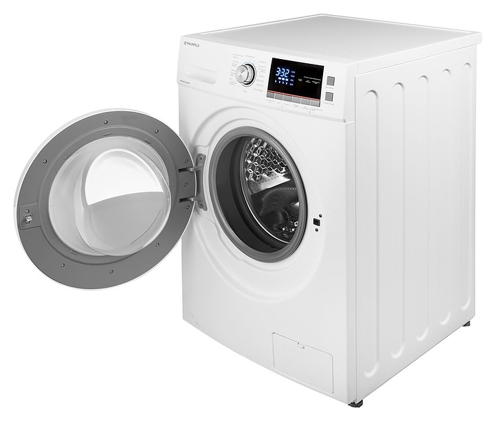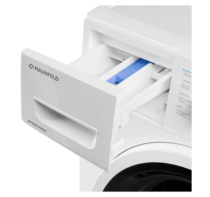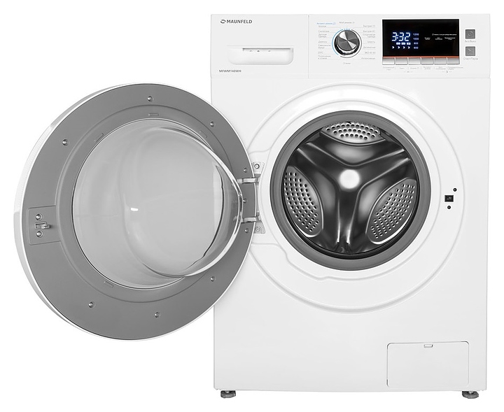 Стиральная машина Maunfeld MFWM148WHиспользуется в домашних условиях, а также небольших прачечных для стирки, полоскания и отжима белья, одежды и тканей. Модель оснащена фронтальным люком со смотровым окном, съемным контейнером для моющих средств с 3 отсеками, сливным шлангом, кабелем питания с вилкой, электромеханической панелью управления с поворотным переключателем программ, функциональными кнопками, сенсорными клавишами, сигнальными лампами и цифровым дисплеем с белой светодиодной подсветкой индикации. Корпус выполнен из металла с антикоррозийным покрытием белого цвета, окантовка двери люка черного цвета, барабан – из высококачественной нержавеющей стали.