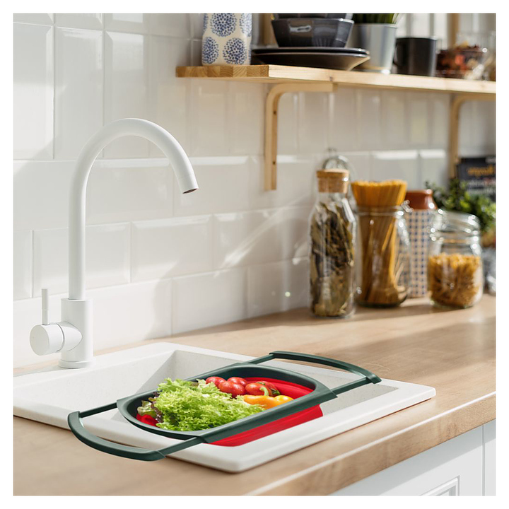 Дуршлаг Westmark 21302270 используется на предприятиях общественного питания, а также в частных домах и квартирах для отцеживания чего-либо, варившегося в воде, например, макаронных изделий, круп и картофеля, а также для мытья и промывания ягод, грибов, мелких фруктов и овощей. Модель оснащена 2 раздвижными ручками. Изделие выполнено из полипропилена и термоэластопласта, без содержания ВРА. Особенности: