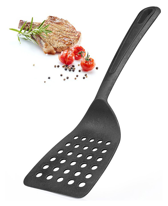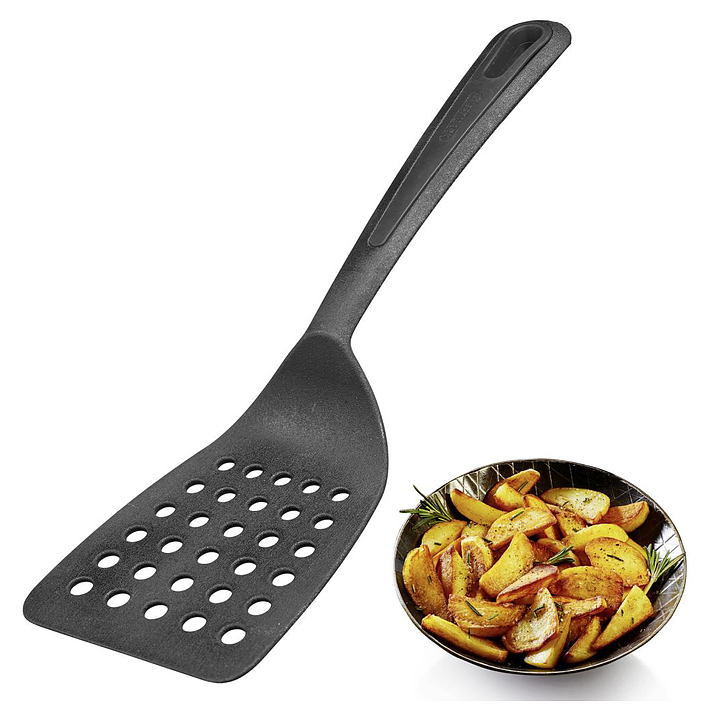 Перфорированная лопатка Westmark 28372270 используется на предприятиях общественного питания и торговли, в частных домах и квартирах для раскладывания готовых блюд на тарелки. Модель оснащена ручкой с soft-touch покрытием и отверстием для подвешивания. Изделие выполнено из полиамида, без содержания ВРА. Особенности: