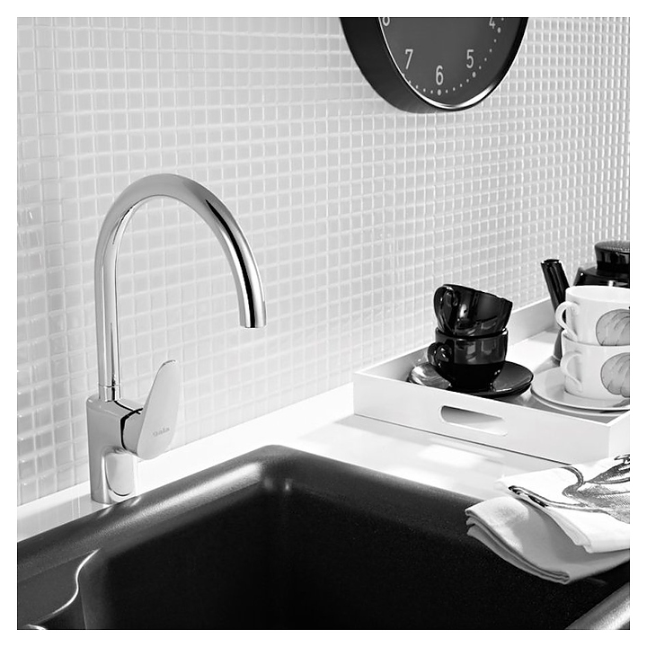 Смеситель Gala Noa 38936 предназначен для использования в кухонных помещениях для подачи горячей и холодной воды. Модель оснащена поворотным изливом, керамическим картриджем, обеспечивающим плавный ход рычага смесителя, контроль и точность при выборе напора и температуры воды, а также аэратором для создания мягкой ровной струи без разбрызгивания. Изделие выполнено из латуни, отличающейся прочностью, долговечностью и устойчивостью к перепадам температур. Особенности:
