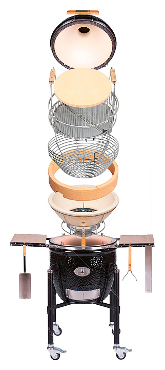 Керамический гриль Monolith LeCHEF PRO-Serie 2.0 предназначен для приготовления блюд на древесном угле в частных домах и на предприятиях общественного питания. Модель сочетает в себе 5 видов оборудования для высокотемпературного приготовления пищи: мангал, тандыр, барбекю, гриль и коптильня. Корпус покрыт специальной глазурью, защищающей от выцветания на солнце и воздействия атмосферных осадков. При эксплуатации гриля НЕ используйте жидкость для розжига и прессованный уголь, используйте только сухой спирт или специальные брикеты для розжига и топите ДРЕВЕСНЫМ углем. Комплектация: