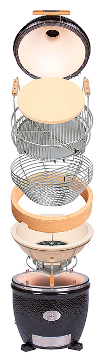 Керамический гриль Monolith LeCHEF PRO-Serie 2.0 предназначен для приготовления блюд на древесном угле в частных домах и на предприятиях общественного питания. Модель сочетает в себе 5 видов оборудования для высокотемпературного приготовления пищи: мангал, тандыр, барбекю, гриль и коптильня. Корпус покрыт специальной глазурью, защищающей от выцветания на солнце и воздействия атмосферных осадков. При эксплуатации гриля НЕ используйте жидкость для розжига и прессованный уголь, используйте только сухой спирт или специальные брикеты для розжига и топите ДРЕВЕСНЫМ углем. Комплектация: