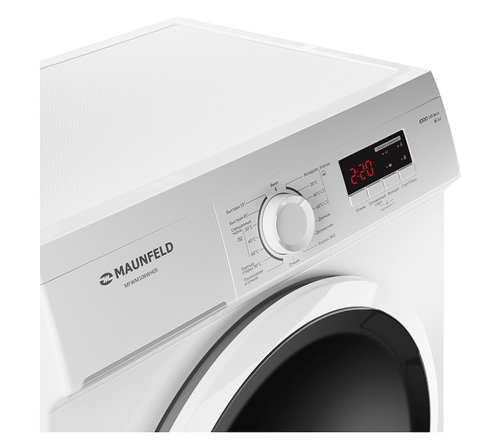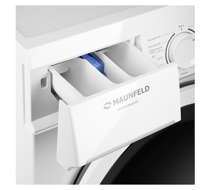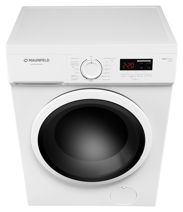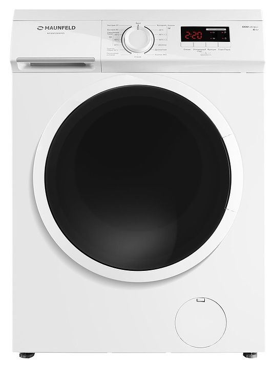 Стиральная машина Maunfeld MFWM106WH05 используется в домашних условиях, а также небольших прачечных для стирки, полоскания и отжима белья, одежды и тканей. Модель оснащена фронтальным люком со смотровым окном, съемным контейнером для моющих средств с 3 отсеками, сливным шлангом, кабелем питания с вилкой, электромеханической панелью управления с поворотным переключателем программ, функциональными кнопками, сигнальными лампами и цифровым дисплеем с красной светодиодной подсветкой индикации. Корпус выполнен из металла с антикоррозийным покрытием белого цвета, внешняя крышка двери люка – из стекла с полупрозрачной дымчатой тонировкой и окантовкой белого цвета, барабан – из высококачественной нержавеющей стали. В комплект поставки входят шланг для подачи воды, набор заглушек и инструкция по эксплуатации. Особенности:
