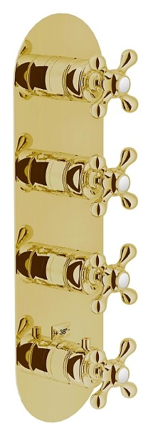 Cмеситель NOBILI WELLBOX GRAZIA GRC5104GDP предназначен для подачи горячей и холодной воды в ванных помещениях. Модель оснащена термостатическим картриджем, обеспечивающим поддержание заданной температуры и силы потока, независимо от того, как в системе меняется давление. Благодаря скрытому монтажу в стену смеситель экономит пространство комнаты и упрощает уборку. Скрытая часть смесителя в комплект поставки не входит и приобретается отдельно. Особенности: